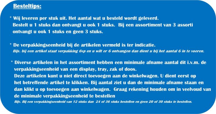 Gratis verzending vanaf € 250,- (exclusief B.T.W.)
