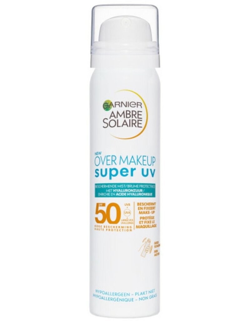 Ontdek nu de eerste beschermende en hydraterende gezichtsspray met SPF 50+ van Garnier Ambre Solaire, in een handig reisformaat. De nevelspray is volledig transparant, is niet vet en plakt niet. Daarnaast kan de formule over makeup worden aangebracht, zonder te smeren. Goed beschermd, zonder uitgelopen mascara dus!